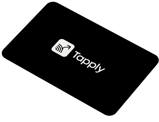 My Tapply è una business card personalizzabile (logo, colori, design) con tecnologia NFC + QR integrati, abilitata al collegamento al tuo profilo digitale.