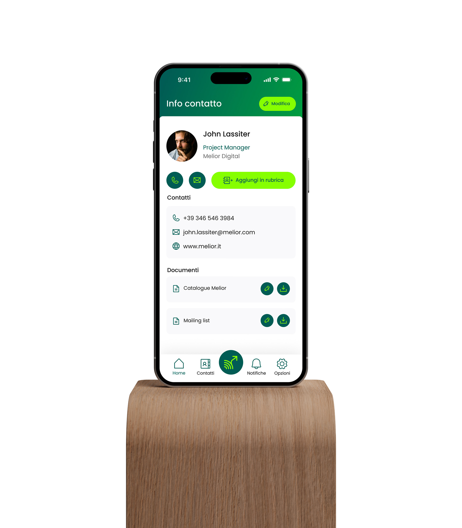 Semplifica lo scambio di contatti e non sarà più necessario ristampare centinaia di biglietti cartacei ogni volta che cambia un numero di telefono, un ruolo o un indirizzo email.