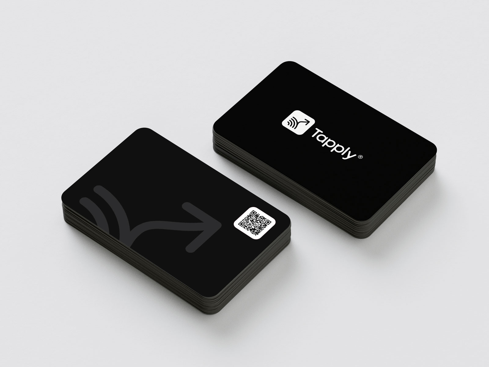 Il biglietto da visita NFC Tapply contiene un microchip che, quando avvicinato allo smartphone della persona che stai incontrando, apre subito il tuo profilo digitale con tutti i tuoi contatti aggiornati. Non serve scaricare app né avere un account: basta un semplice tap.